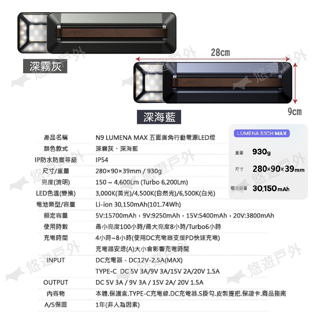 【悠遊戶外】N9 LUMENA MAX五面廣角行動電源LED燈