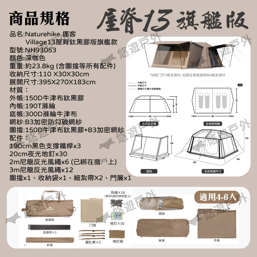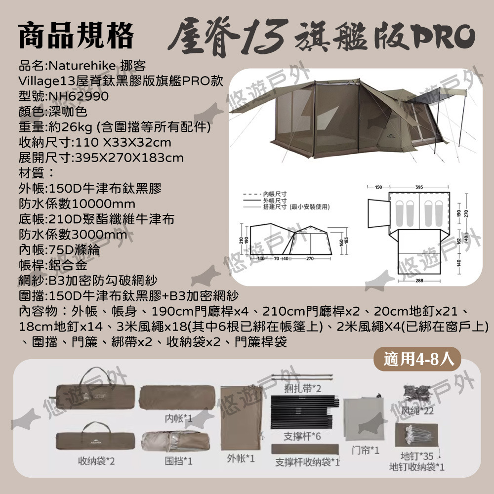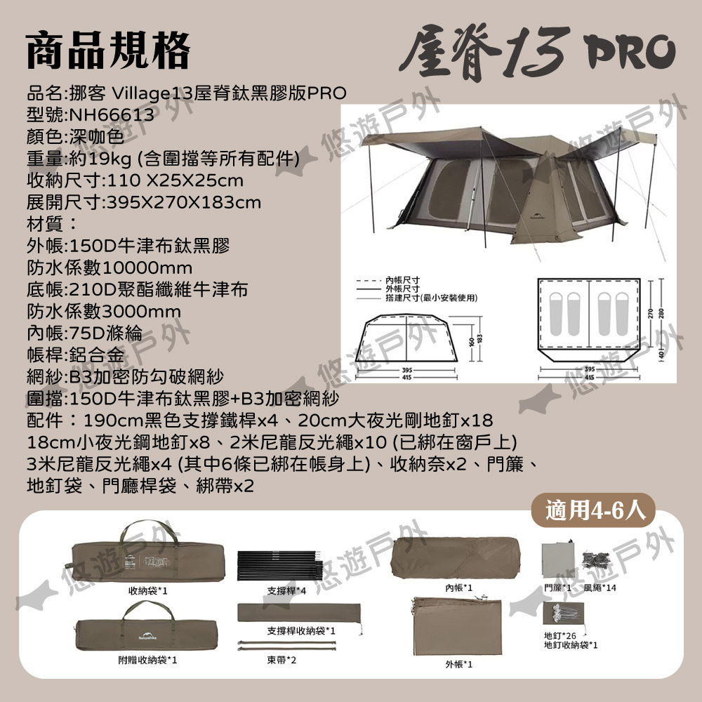 【悠遊戶外】Naturehike 挪客 Village13屋脊鈦黑膠系列|旗艦 / PRO / 旗艦PRO 款