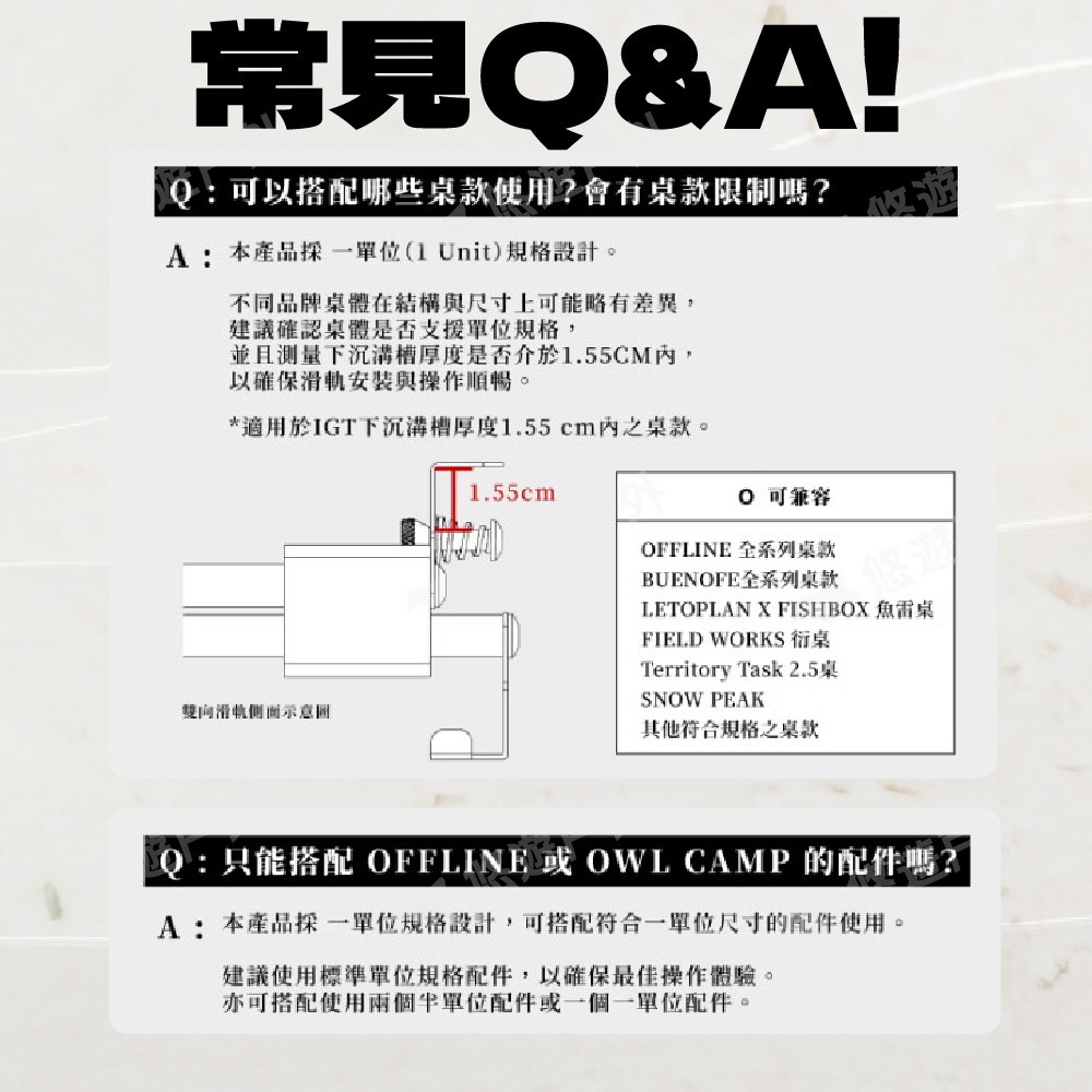 👉 適配多款桌組|適用於IGT下沉溝槽厚度1.55cm内之桌款,如:BUENOFE、OFFLINE等