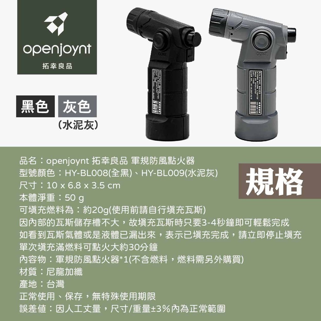品名:openjoynt 拓幸良品 軍規防風點火器