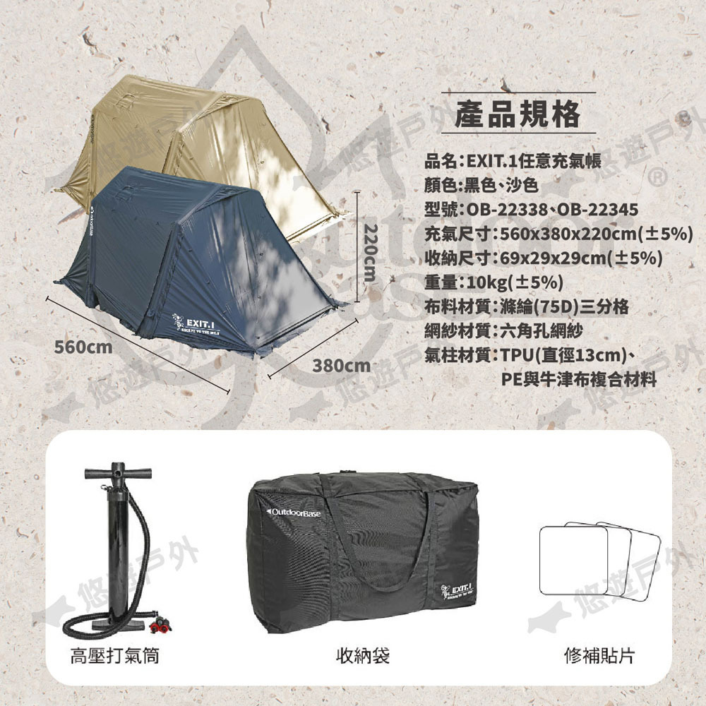 【悠遊戶外】Outdoorbase EXIT.1任意充氣帳 OB-22338.45 黑/沙