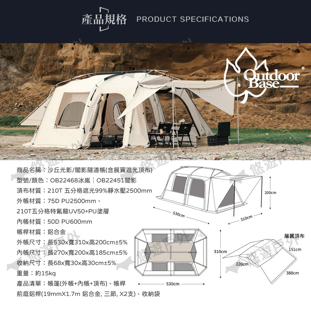 【悠遊戶外】沙丘光影/闇影隧道帳(含展翼遮光頂布)