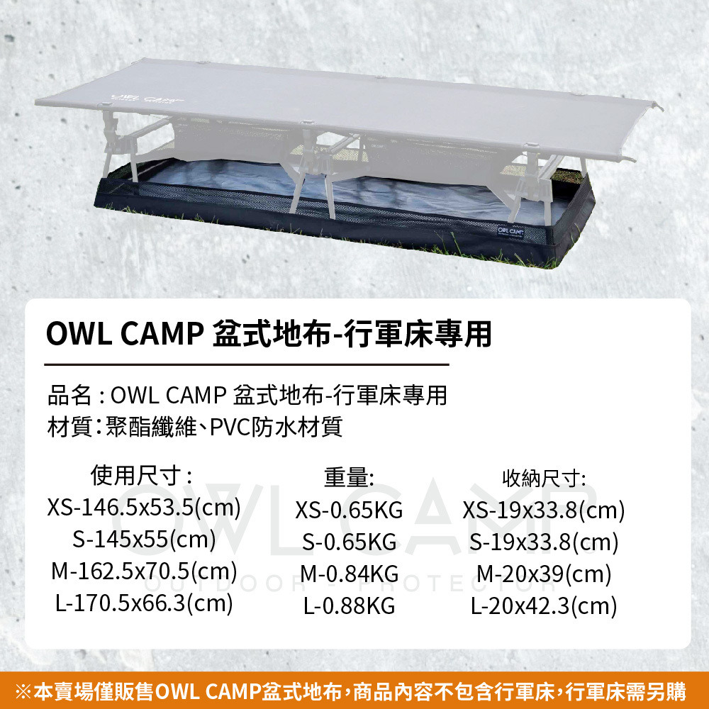 【悠遊戶外】OWL CAMP 行軍床專用 盆式地布 XS.S.M.L