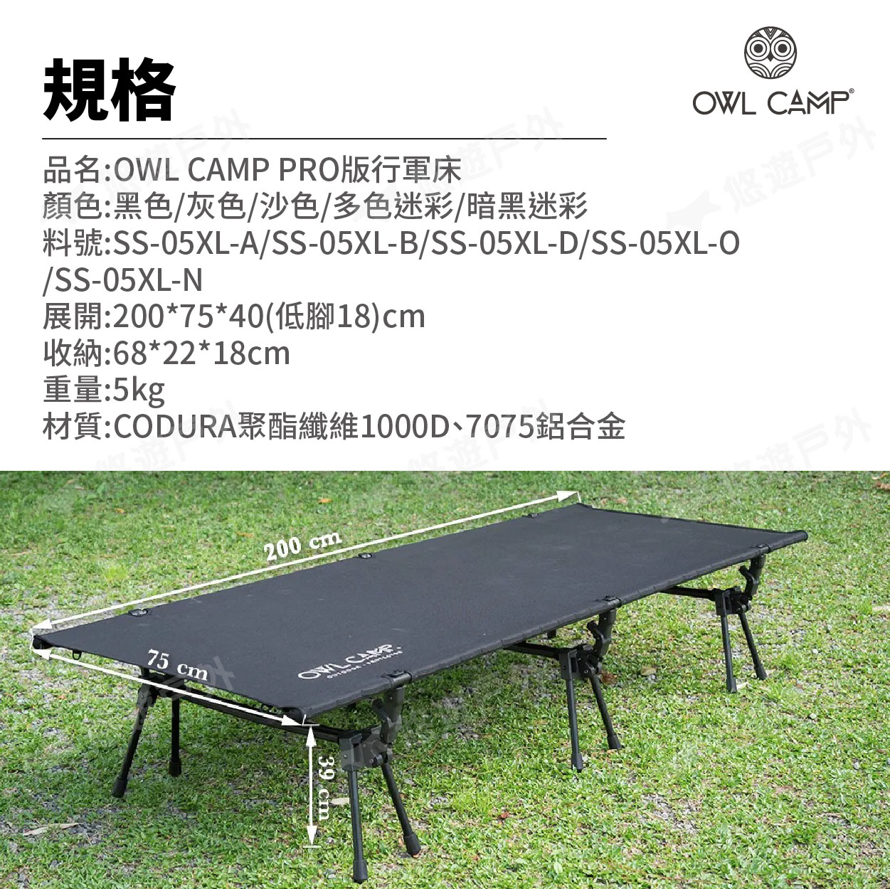 【悠遊戶外】OWL CAMP PRO版行軍床-黑/沙/灰/多地迷彩