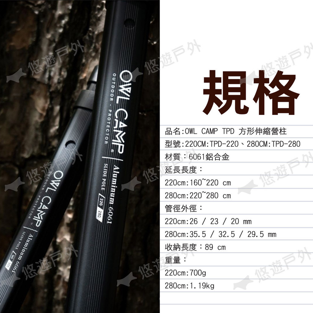 【悠遊戶外】OWL CAMP TPD 方形伸縮營柱220CM/280CM