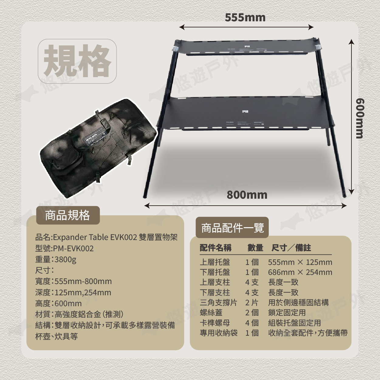【悠遊戶外】PILMOA Expander Table EVK002 雙層置物架 PM-EVK002
