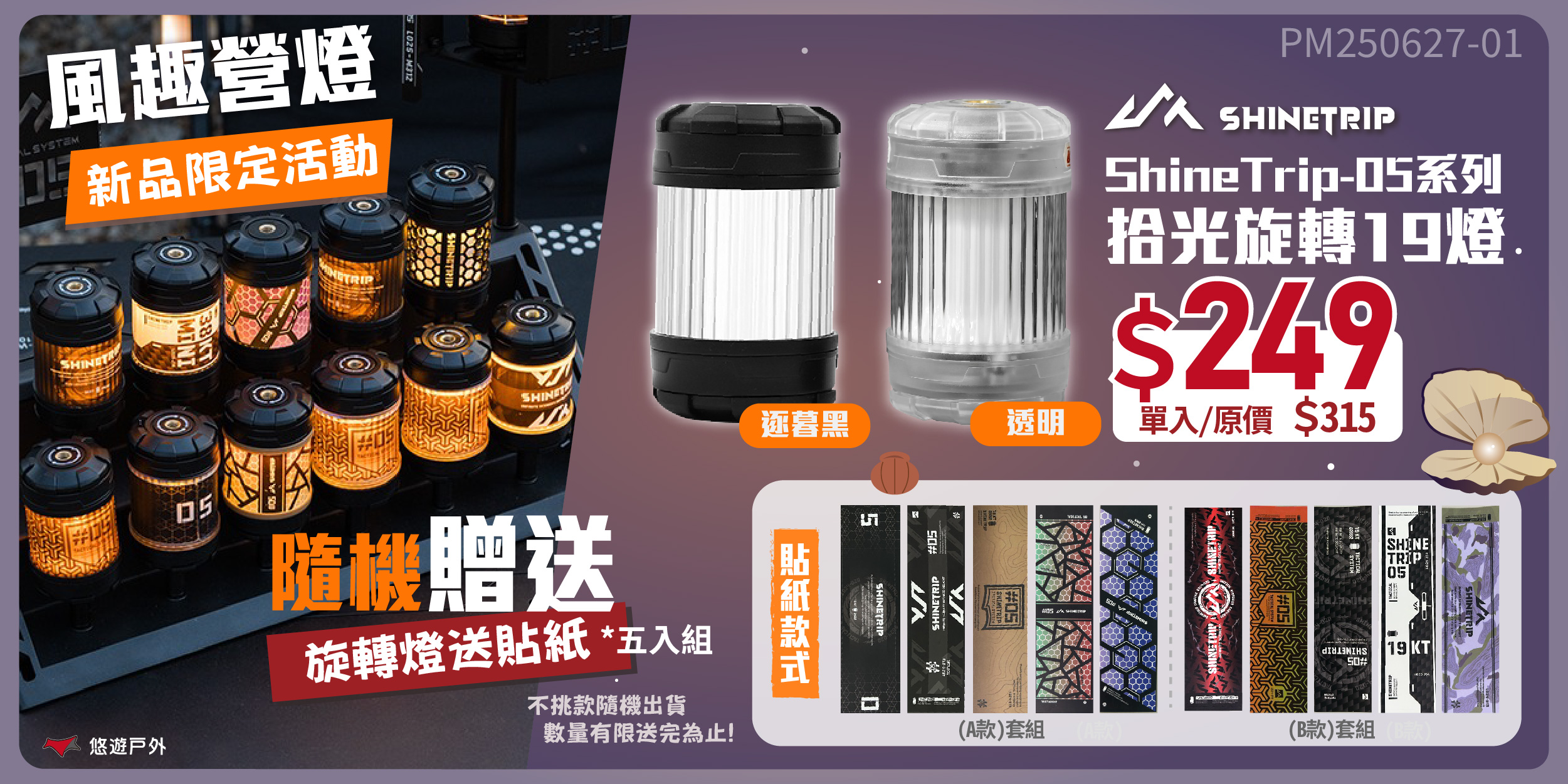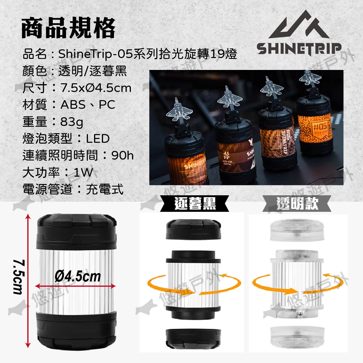 【悠遊戶外】ShineTrip/山趣 05系列拾光旋轉19燈-透明/逐暮黑/啟航標/轉輪/掛繩/吊環螺絲