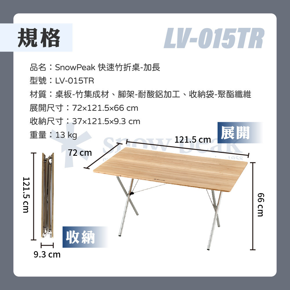 品名:SnowPeak 快速竹折桌-標準