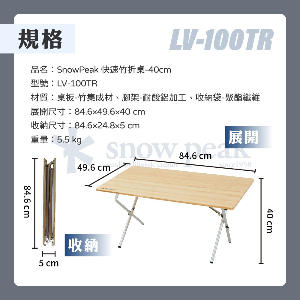 品名:SnowPeak 快速竹折桌-40cm