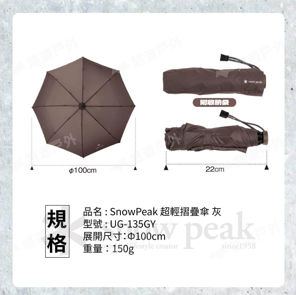品名 : SnowPeak 超輕摺疊傘 灰
