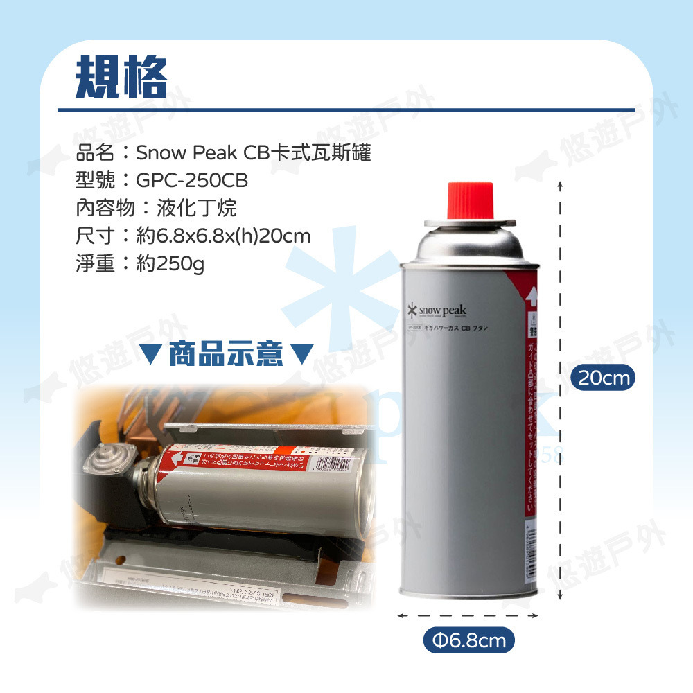 【Snow Peak】CB卡式瓦斯罐 GPC-250CB 液化丁烷250g 適用GS-600瓦斯爐 野炊 露營 悠遊戶外