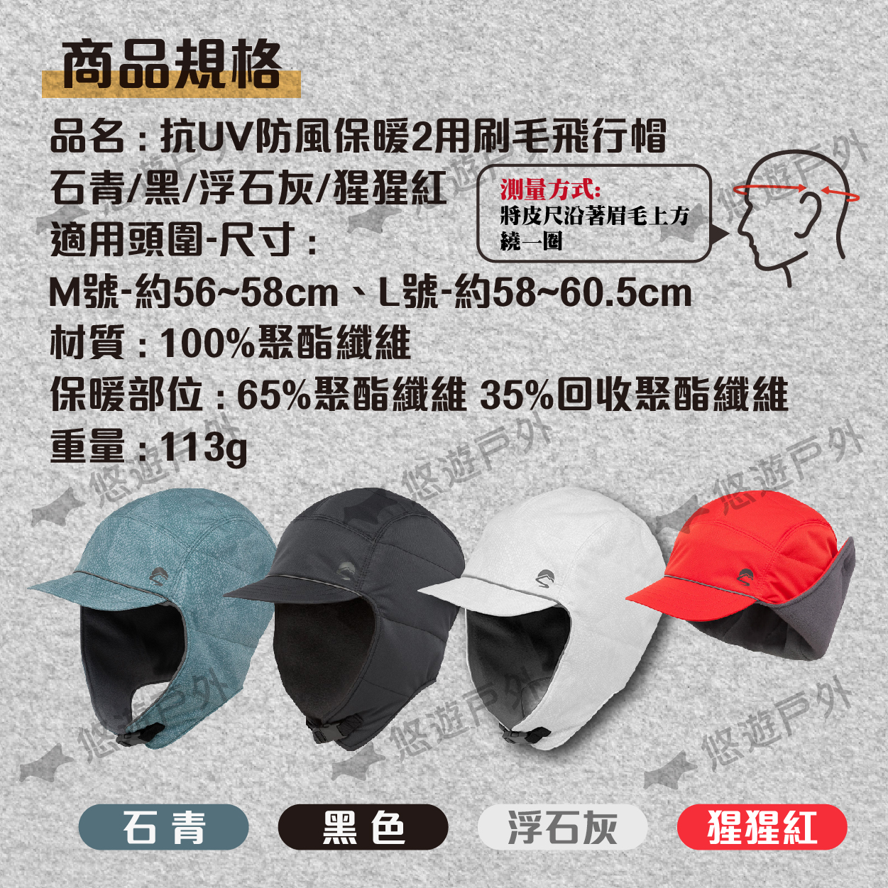 【悠遊戶外】07289抗UV防風保暖2用刷毛飛行帽 石青/黑色/浮石灰/猩猩紅 -M號/L號