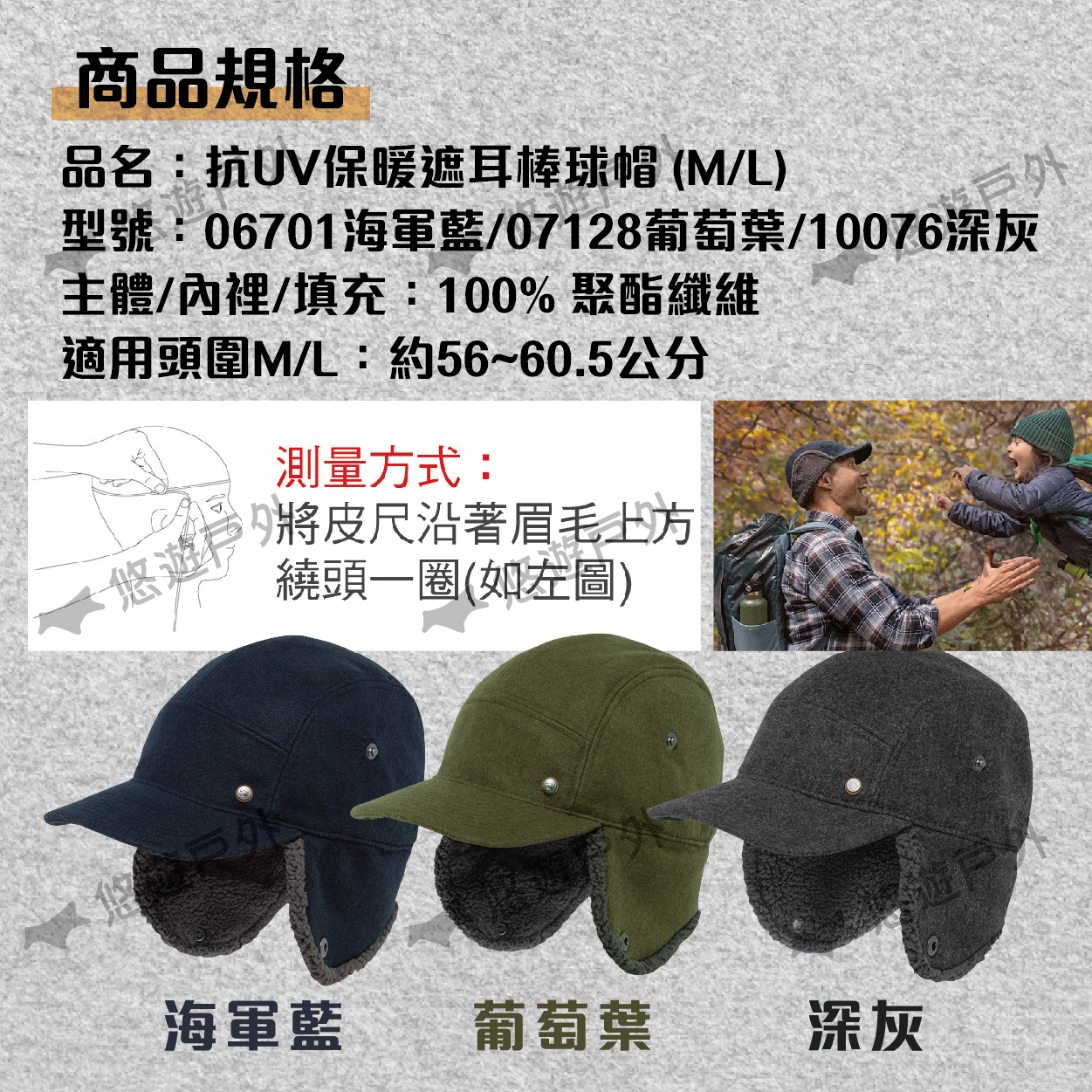 【悠遊戶外】06701 抗UV保暖遮耳棒球帽-海軍藍/葡萄葉/深灰(M/L)