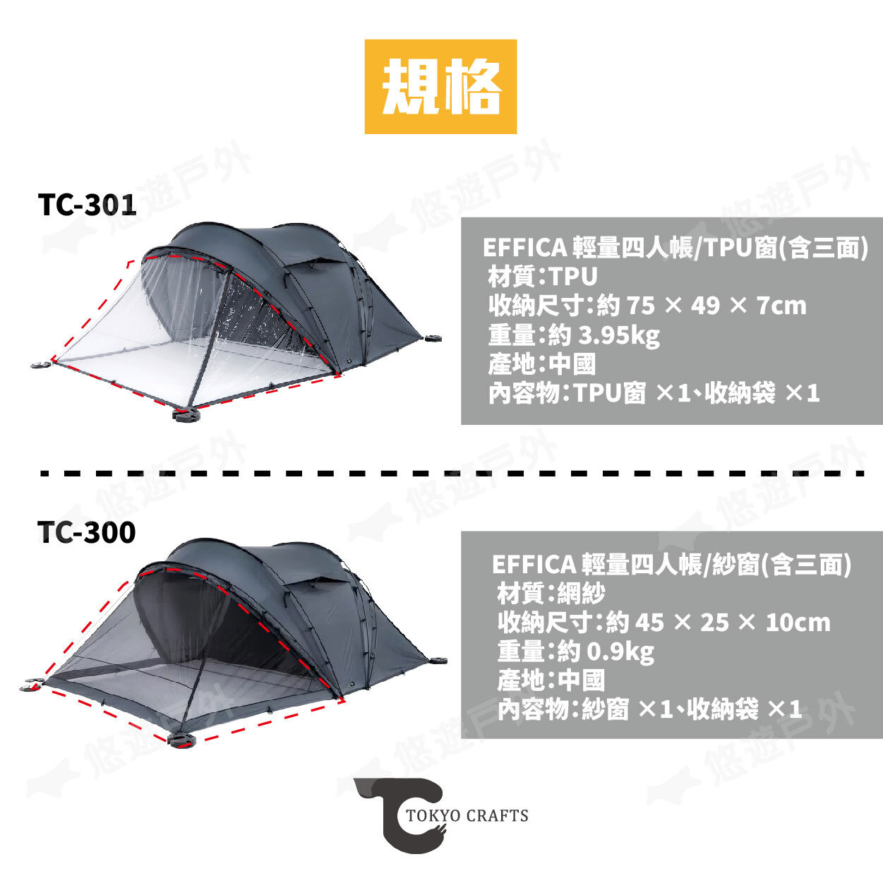 【悠遊戶外】TOKYO CRAFTS EFFICA 輕量四人帳 TPU窗
