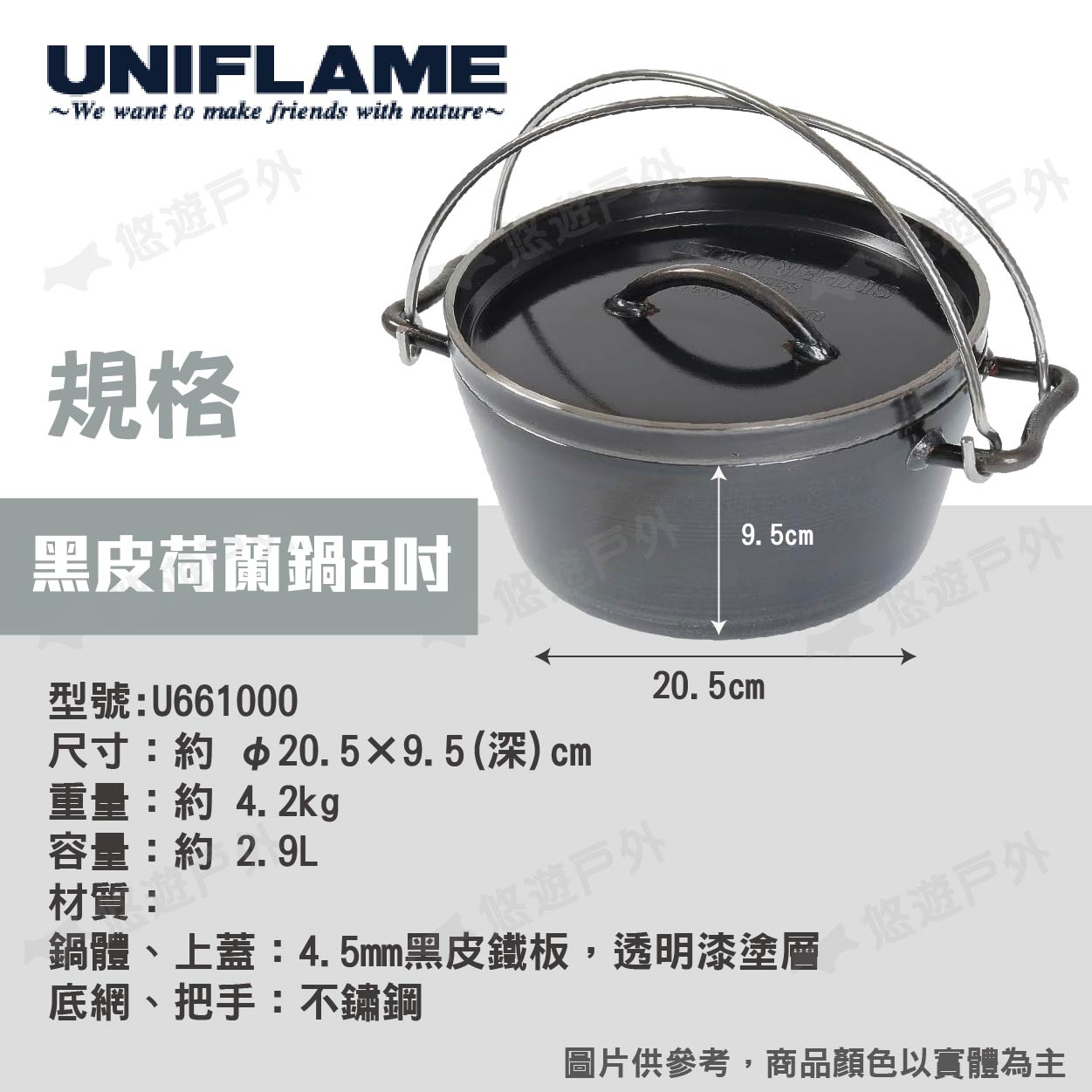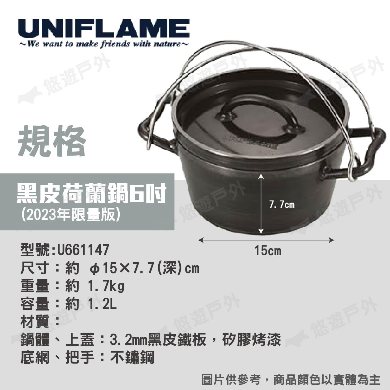 【悠遊戶外】UNIFLAME 黑皮荷蘭鍋
