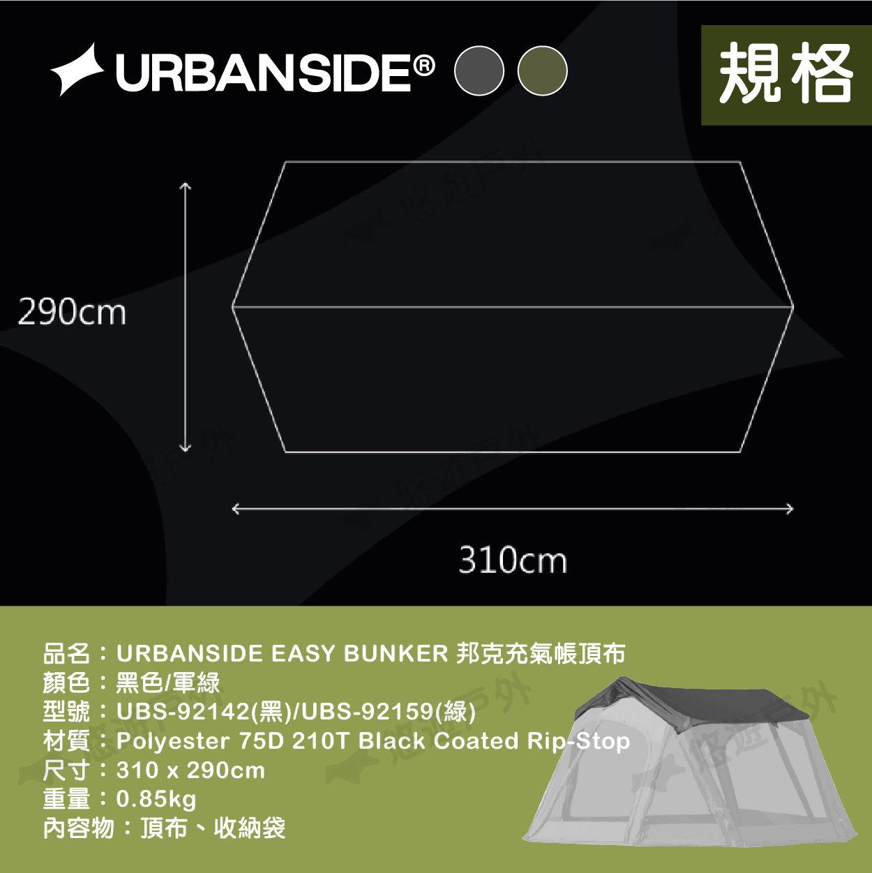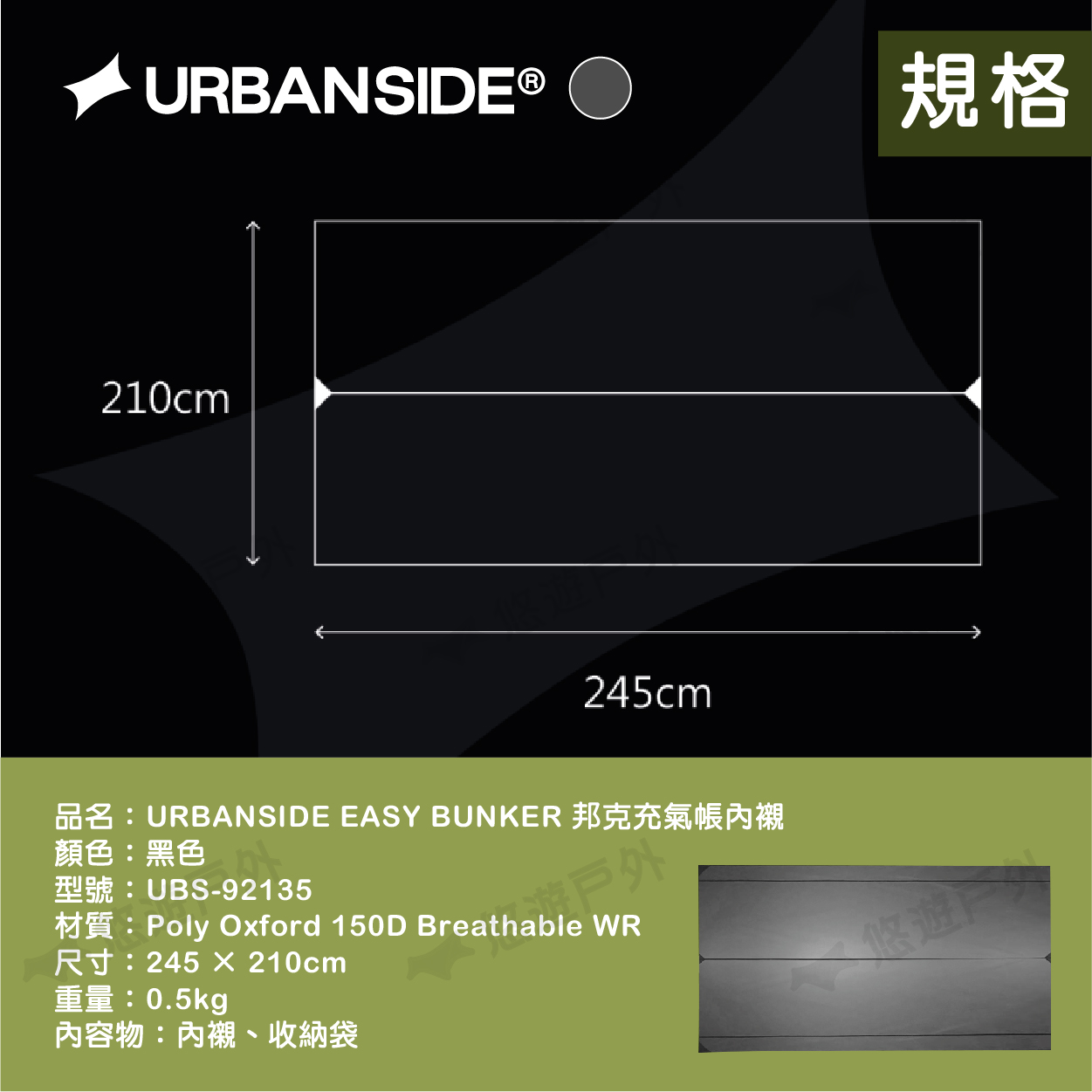 品名:URBANSIDE EASY BUNKER 邦克充氣帳地布