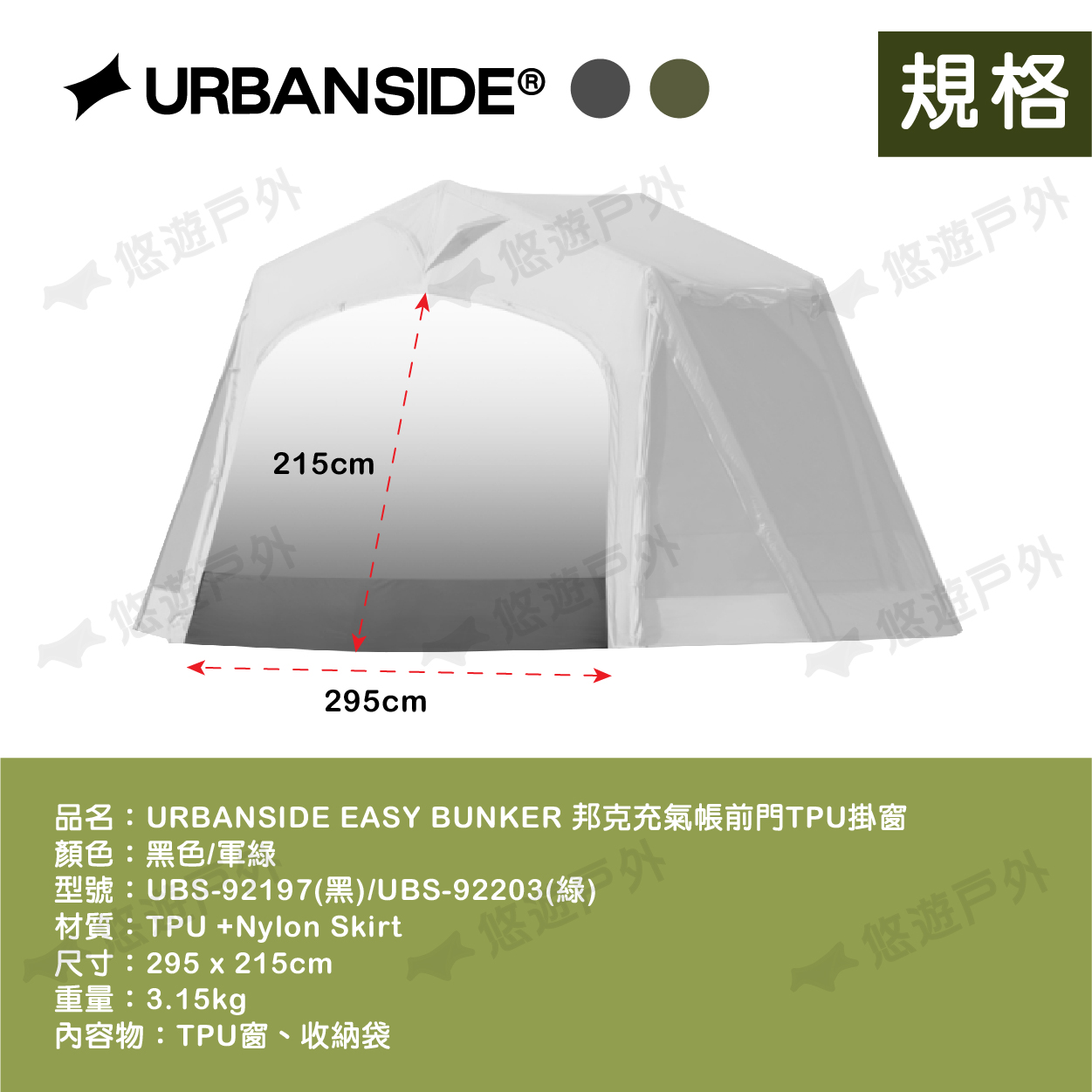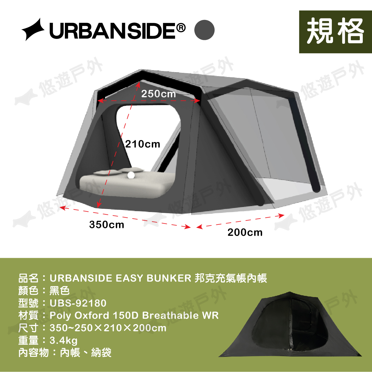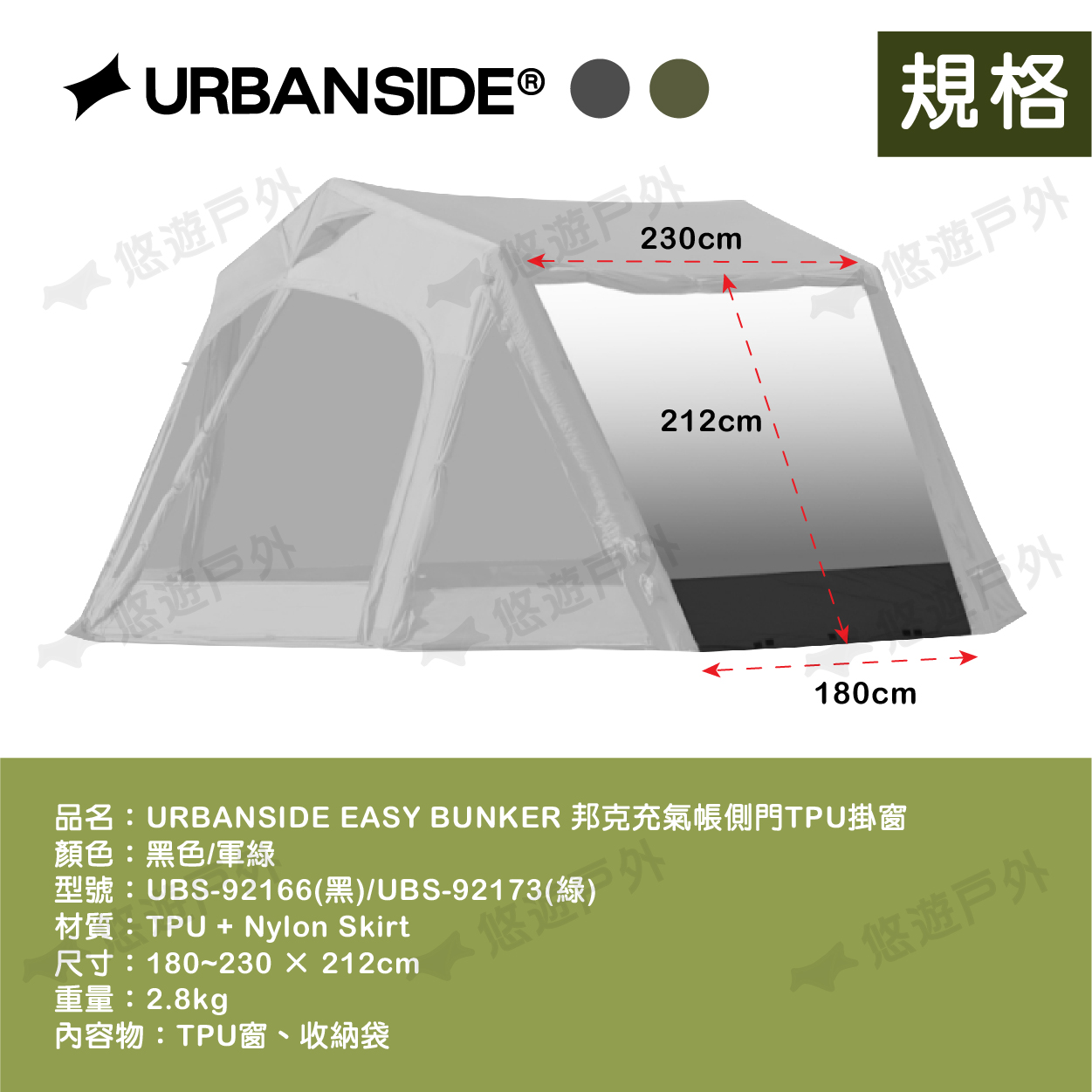 品名:URBANSIDE EASY BUNKER 邦克充氣帳前門TPU掛窗