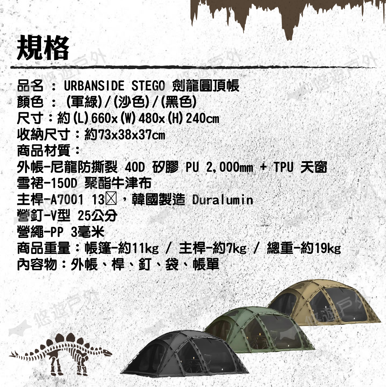 【悠遊戶外】URBANSIDE STEGO 劍龍圓頂帳(軍綠)/(沙色)/(黑色)