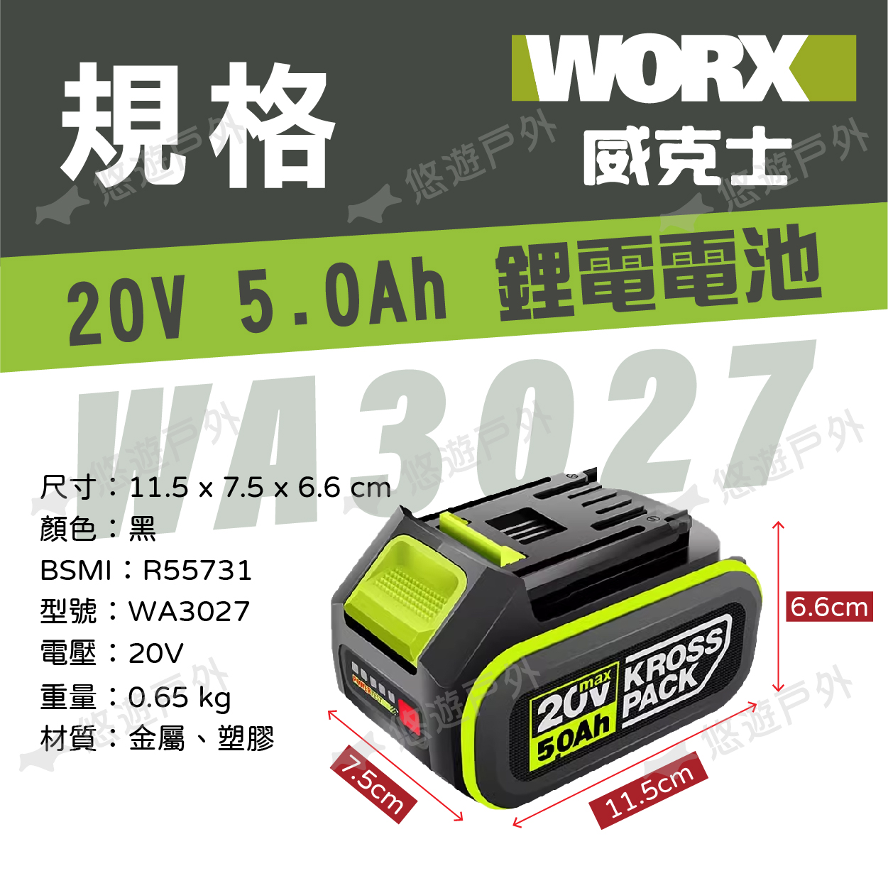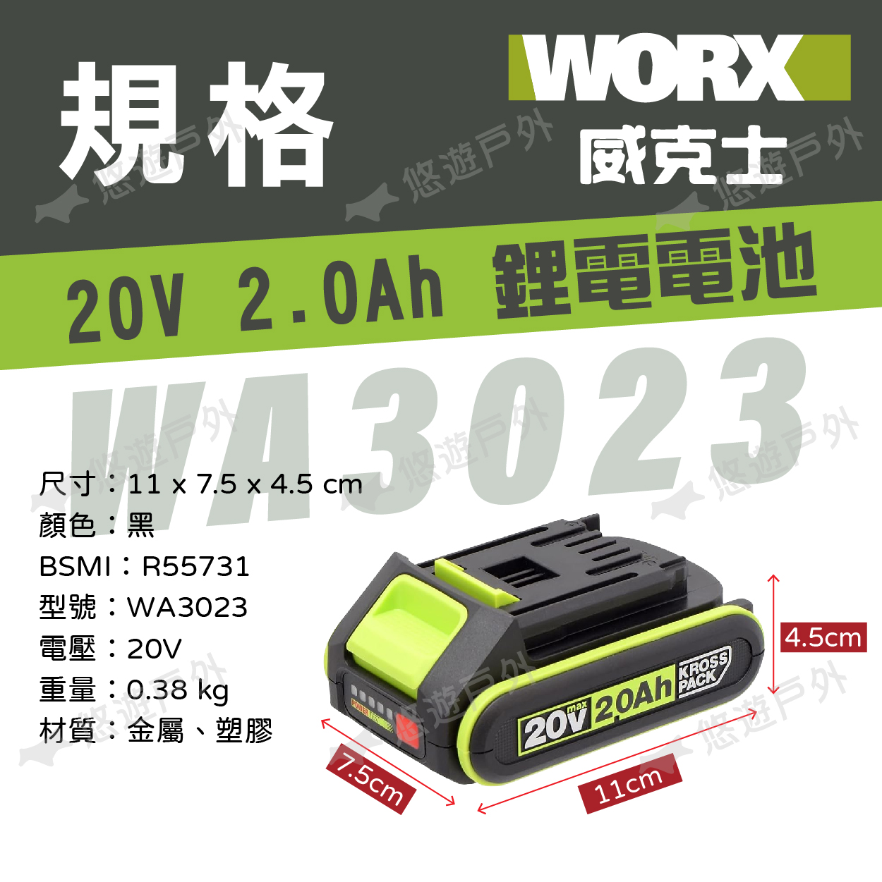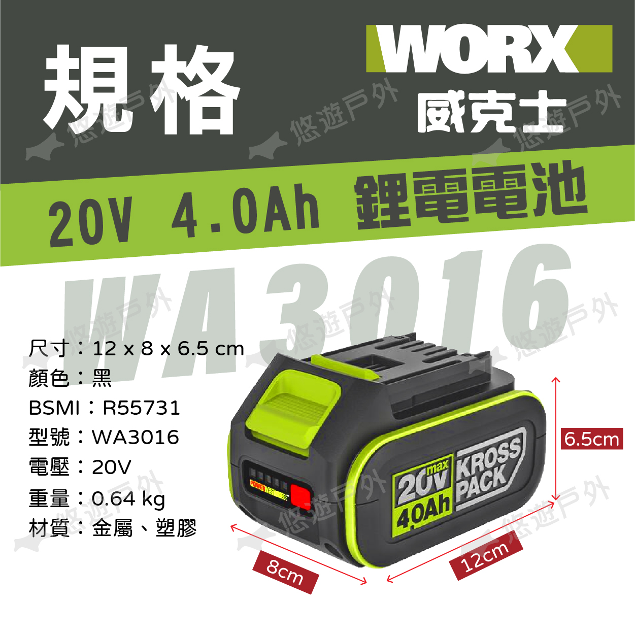 【悠遊戶外】WORX 威克士20V 2.0/4.0/5.0Ah 鋰電電池 WA3016.23.27